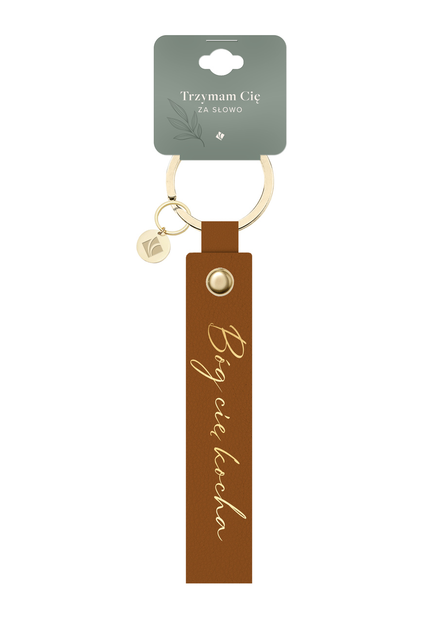 Brelok z ekoskóry z inspirującym napisem „Bóg cię kocha”