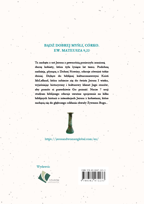 Ta zachęta z ust Jezusa z pewnością pocieszyła zranioną duszę kobiety, która żyła tysiące lat temu. Podobną nadzieję, płynącą z Dobrej Nowiny, oferuje również tobie dzisiaj. Dołącz do biblijnej kulturoznawczyni Kristi McLelland, która zabierze cię do świata Jezusa I wieku, wyjaśniając historyczny i kulturowy klimat Jego czasów, aby pomóc ci prawdziwie Go poznać. Nasze 7 sesji studium biblijnego oferuje uważne spojrzenie na kilka biblijnych historii o interakcjach Jezusa z kobietami, które zachęcą cię do głębszego oddania chwały Żywemu Bogu…