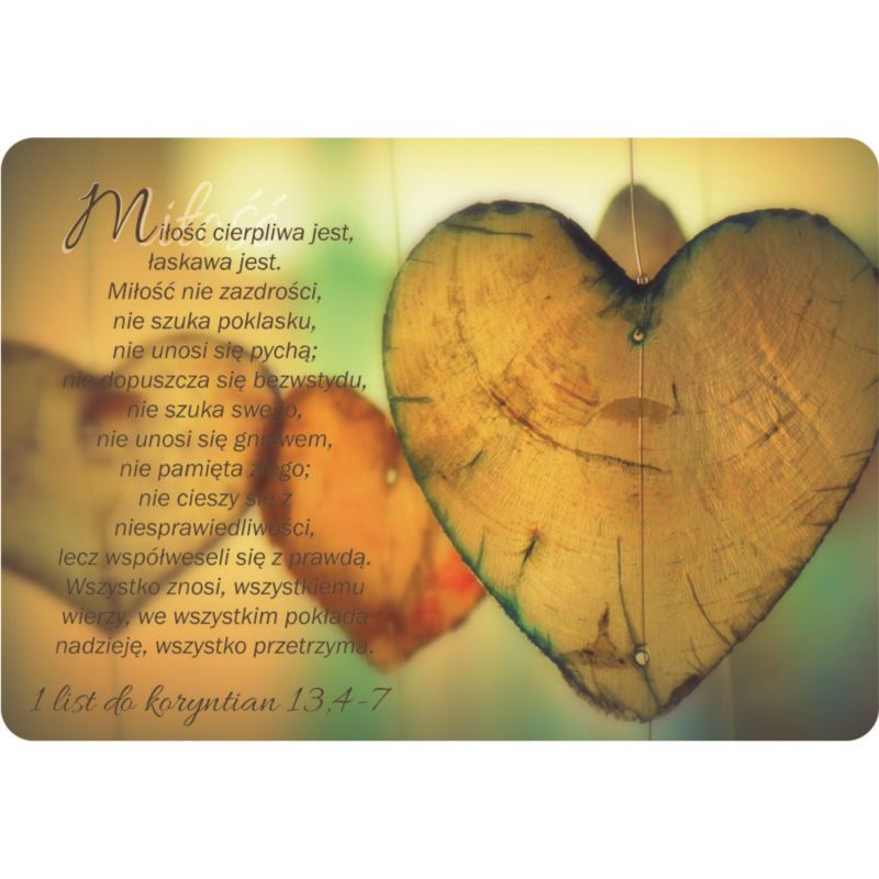 Magnes na lodówkę w rozmiarze 5,5 x 8 cm. Tekst na magnesie zaczerpnięty jest z Pisma Świętego, 1 List do Koryntian 13,4-7 Grubość magnesu idealnie trzyma materiały, które chcemy mieć zawieszone na lodówce.
