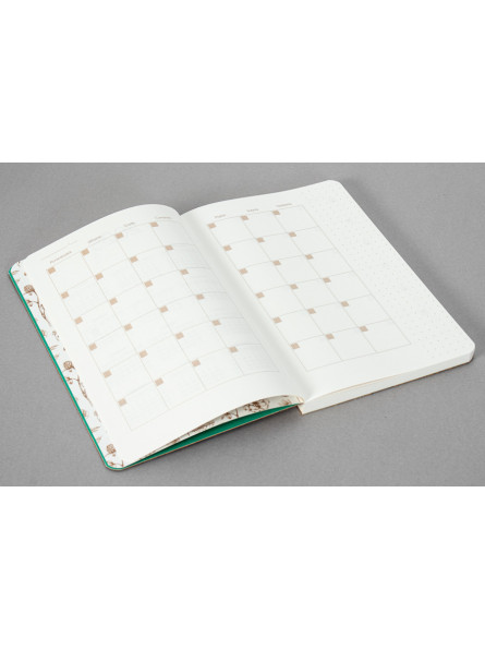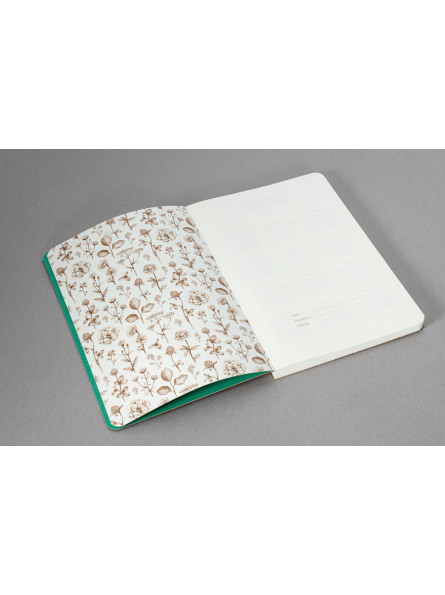 Ekskluzywny planer bezdatowy z grafiką w kwiaty malwy i ozdobnym tłoczeniem.