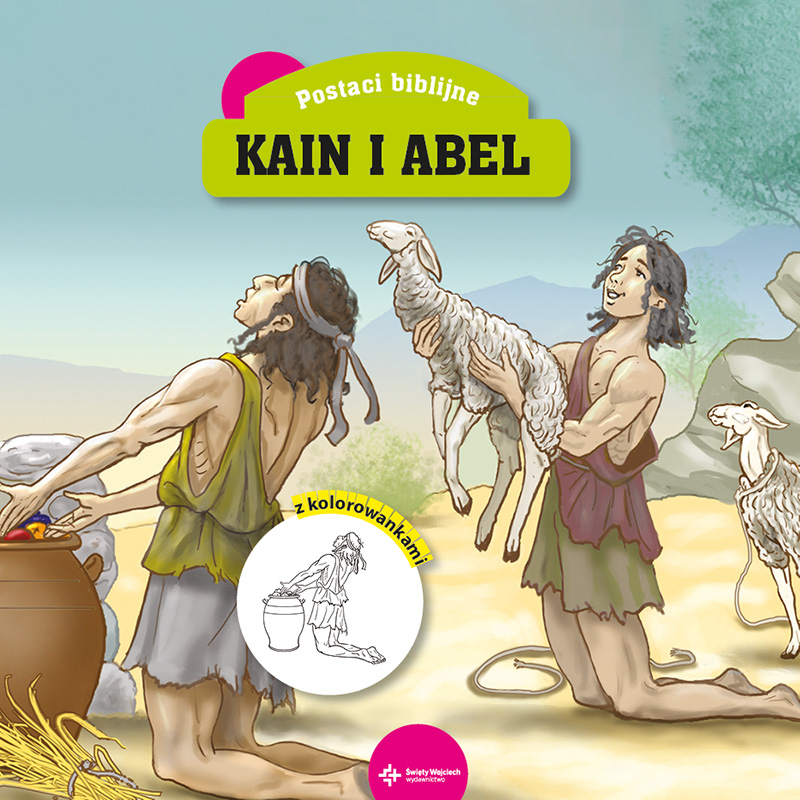 Postaci biblijne Kain i Abel z kolorowankami